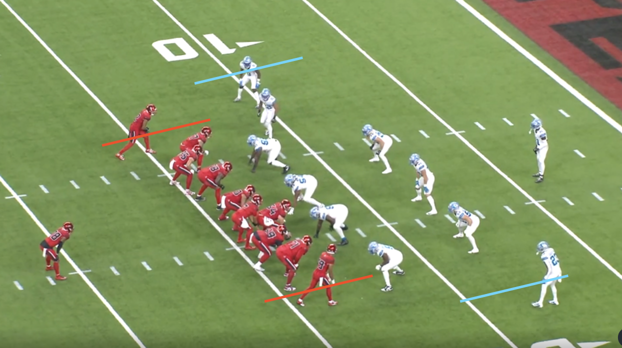 스크리미지 라인에 수비수를 많이 배치해서 전선을 길게 늘리고 일대일을 만들어 냅니다. 라인베커는 믹슨만 보고 수비를 합니다. 거기다 컨덴스드 포메이션이라서 아웃사이드도 쉽게 닫을 수 있었습니다.