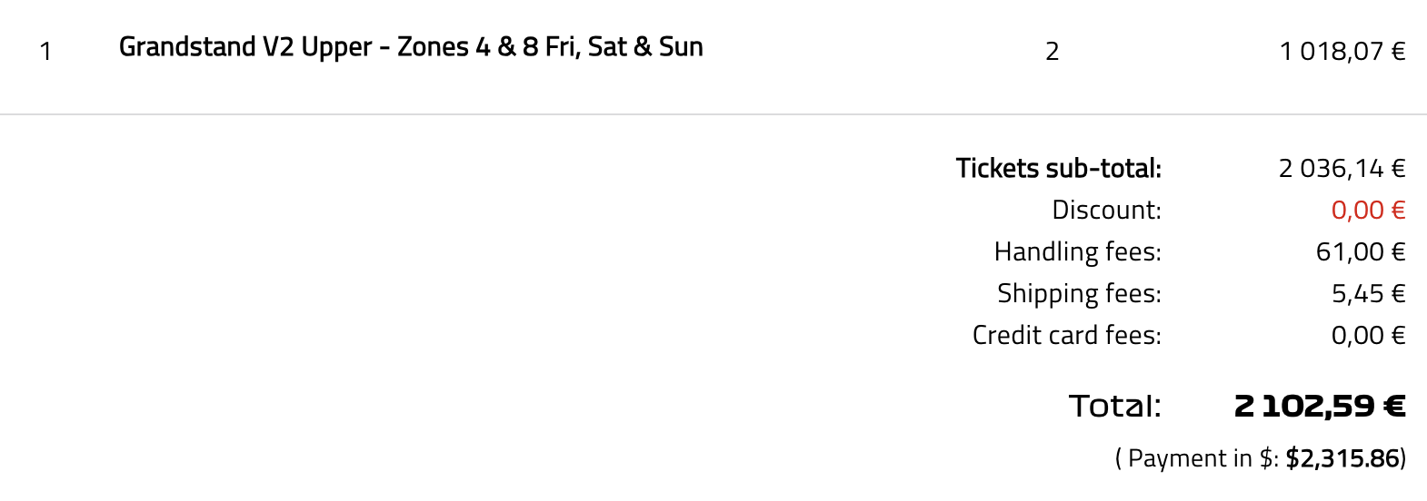 우리는 이번이 첫 F1 직관이었고 룰 정도를 겨우 알아가는 과정이었기 때문에 한 번 갈꺼 좋은 데서 보자는 마인드로 V2 구역을 구입했다! 정말 거금이 들었다.