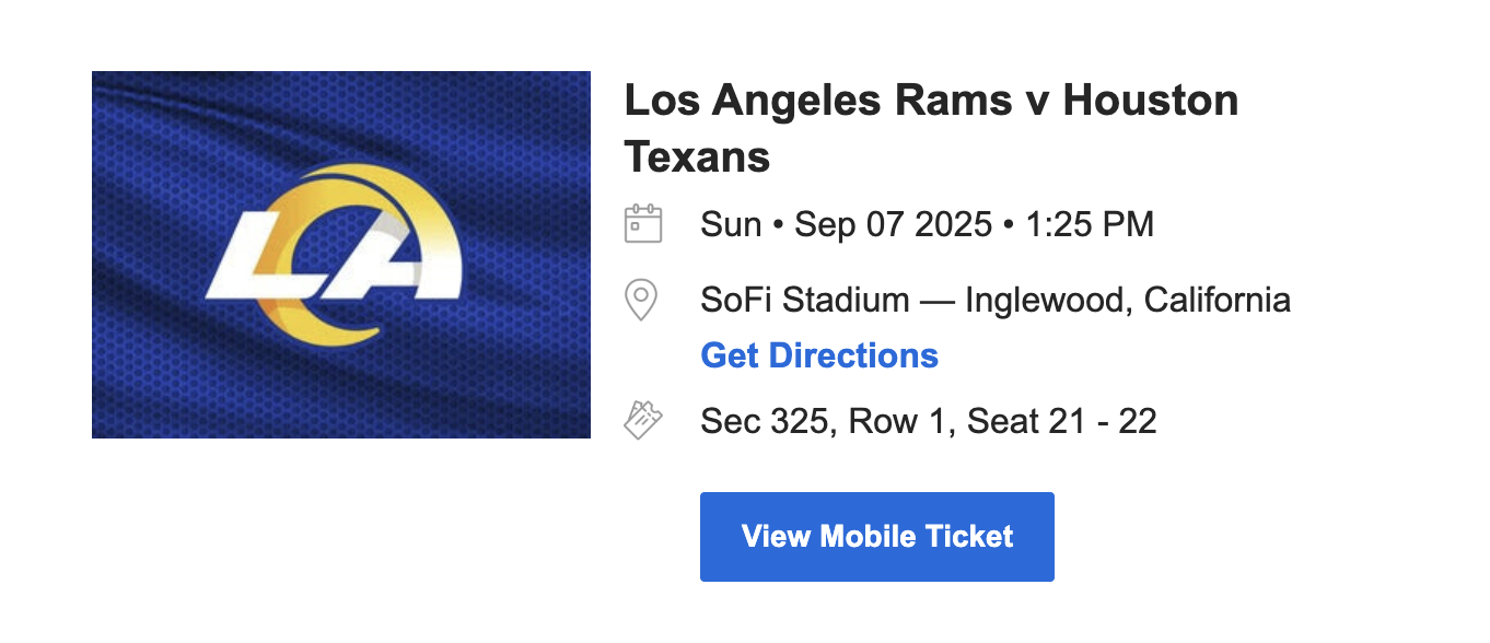 거기다 내가 응원하는 Houston Texans와 LA Rams와의 경기였기 때문에 이 기회를 그냥 지나칠 수 없었다.